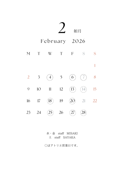 2月の営業日のお知らせ